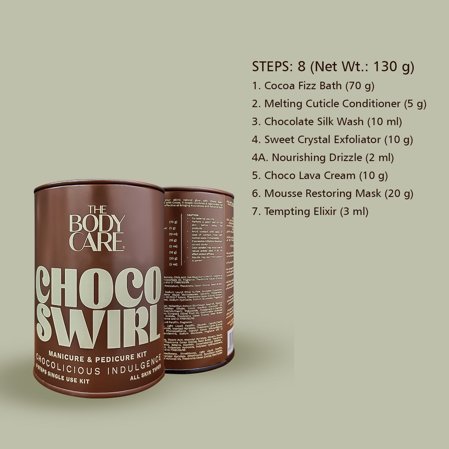 Acetate, Prunus Amygdalus Dulcis (Sweet Almond) Oil, Theobroma Cacao (Cocoa)